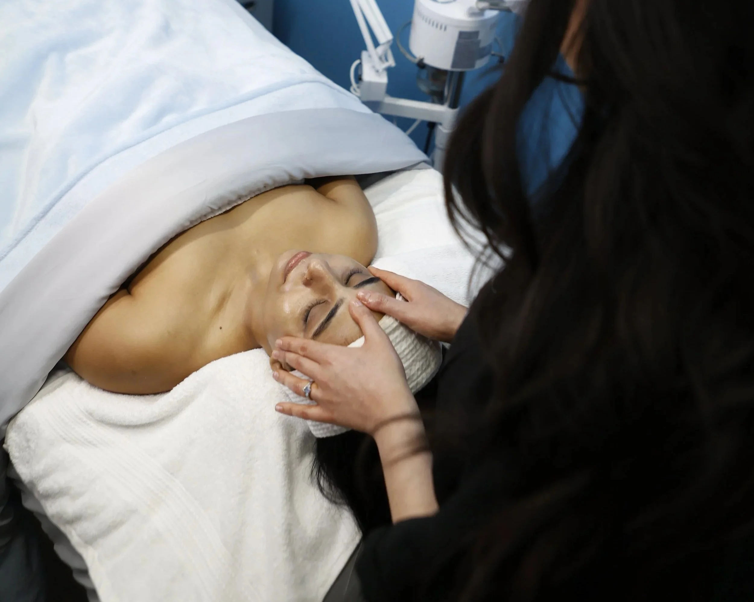 First visit: We assess your skin, discuss your goals, and perform your first treatment. No separate consultation is required, although one is available if you’d prefer.
